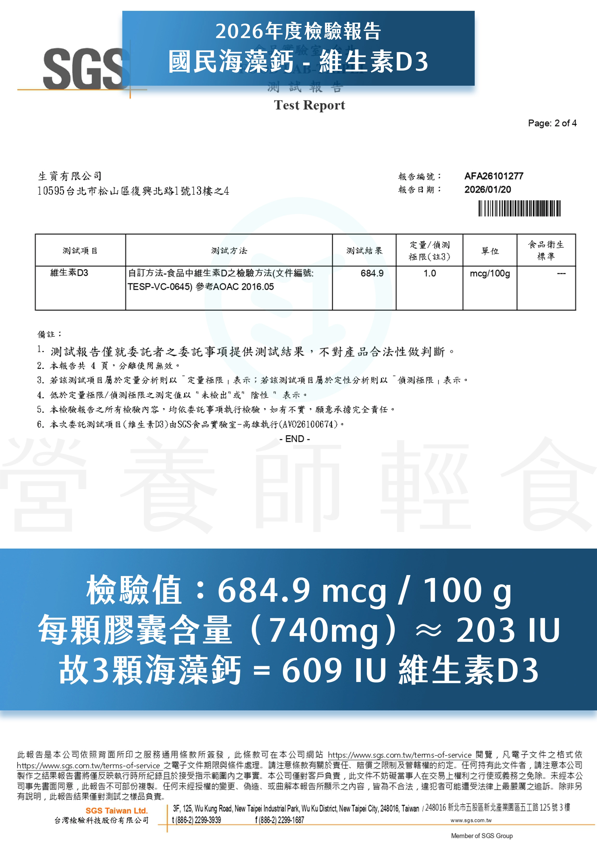 國民海藻鈣每份三顆含 600 IU 維生素 D3,已經可以滿足成人一天的建議攝取量,不需要再額外補充。